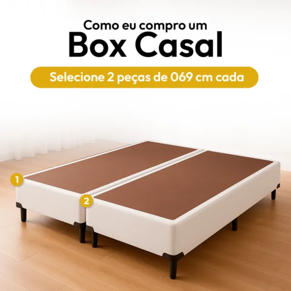 - Para a medida 069 cm (solteiro), o tamanho correspondente é Casal 138 cm. O Baú bi-partido deve ser escolhido caso precise passar por ambientes estreitos ou facilitar a passagem em escadas. Você receberá duas peças que serão montadas no local desejado.